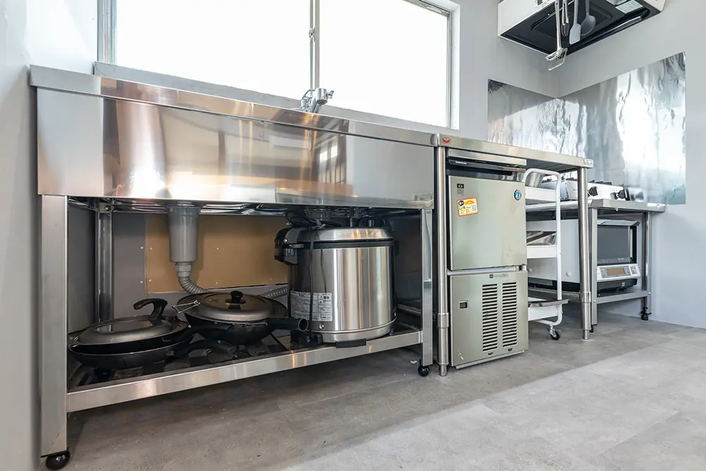 菓子製造許可付のキッチンで、あなたのオリジナル商品を製造することができます。このキッチンで作った商品は、ナワシロスタンドだけでなくほかのお店等で販売することができます。